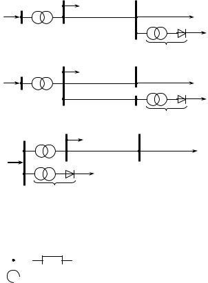 а – по общей линии; б – по отдельной линии; в – трансформатор выпрямительной установки с первичным напряжением 110 – 220 кВ