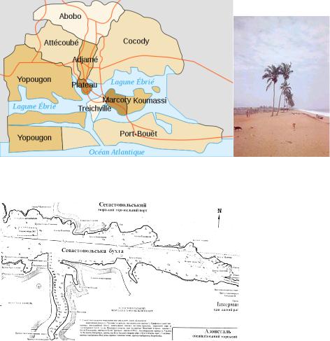 Лагунные порты размещаются в глубине лагун, образовавшихся на песчаных берегах вследствие отложения естественных кос, отделяющих лагуны от моря. Такие порты не нуждаются в защите от волнения, но имеют подходные каналы, на которых необходимо поддерживать глубины, удаляя наносы землечерпанием. Пример. Абіджа́н (Abidjan) — місто, колишня столиця (1960—1983) Республіки Кот-д'Івуар в західній Африці, порт на березі Гвінейської затоки. Місто розташоване на півострові Абіджан, на березі лагуни Ебріє Атлантичного океану