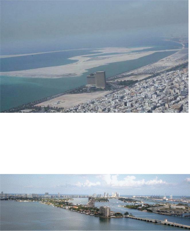 В США во Флориде (Майами) были намыты Венецианские острова, представляющие собой цепь из шести искусственных островов, соединенных дамбами и мостами. Кроме одного из них, предназначенного исключительно для загородного отдыха в естественных природных условиях, на всех остальных островах располагается индустрия туризма.