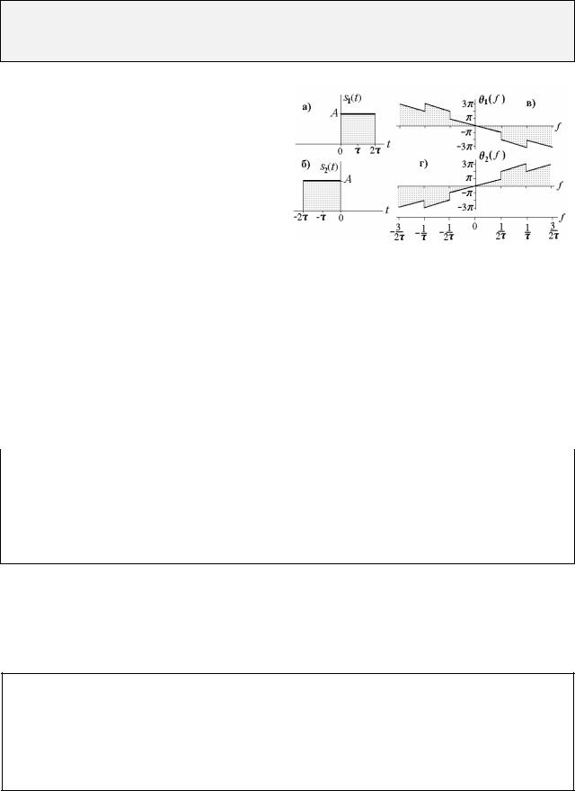 сигнала s1(t), на рис. 3.16б)– график сигнала s2(t). Амплитудные спектры этих сигналов одинаковые (см. рис. 3.12 б). Фазовый спектр сигнала s1(t) показан на рис. 3.16 в), сигнала s2(t) – на рис. 3.16г). Если сравнить, например, фазовый спектр сигнала