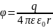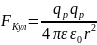 где q1 и q2 –величина первого и второго зарядов, ε –диэлектрическая проницаемость среды, ε0 –электрическая постоянная, r- расстояние между зарядами.
