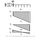 В случае применения указанных аппаратов (см. рис.18.1,а-б) централизованное регулирование напряжения производится одновременно для всех линий распределительной сети, присоединенных к шинам данного ЦП. Поэтому эти схемы централизованного регулирования могут обеспечить требуемое качество напряжения у электроприемников только в тех случаях, когда к шинам ЦП присоединяются линии распределительной сети, питающие однородных потребителей. Под однородными потребителями понимаются группы электроприемников, для которых графики изменения нагрузок во времени являются практически однотипными.