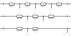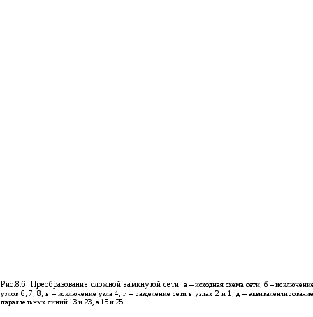 Таким образом, использование переноса нагрузок и сложения параллельных линий позволило перейти от сложной замкнутой сети на рис.8.6,а к линии с двухсторонним питанием на рис.8.7,д.