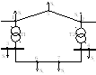 Как правило, ряд линий 35 кВ и ниже сооружается с сечениями проводов, мало отличающихся друг от друга. Такие линии приближаются к однородным. Сети более высокого напряжения, особенно 220 кВ и выше, неоднородны. Даже воздушная линия с проводом одинакового сечения является неоднородной при неодинаковых среднегеометрических расстояниях между проводами на участках сети. Наибольшая неоднородность участков сети наблюдается в замкнутых контурах, образованных сетями разных номинальных напряжений (рис.8.8). Трансформаторы Т1 и Т2 имеют большие реактивные и очень малые активные сопротивления, из-за чего значительно нарушается однородность сети.