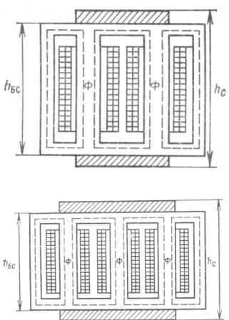 3 раза для трехфазных. На рис. 1.8, 1.9 для сопоставления показаны общие высоты стержневого hc и