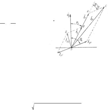 ложения двух режимов. Действительно, наличие уравнительного тока обеспечивает равенство вторичных напряжений обоих трансформаторов напряжению 0С (рис. 9.7). Поэтому когда появляется внешняя нагрузка, то внешний нагрузочный ток распределяется между трансформаторами пропорционально их номинальным мощностям. Таким образом, все происходит так, как если бы в каждом из трансформаторов существовали два тока – уравнительный Iy и нагрузочный ток Iнг , соот-