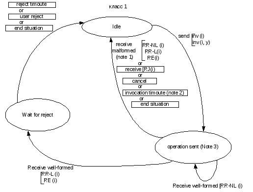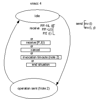 Операции класса 1. Характеризуются подтверждением успешного и неуспешного завершения операции. В случае ошибки протокола может также иметь место не прием подтверждающего сообщения. При вызове операции класса 1, на вызывающей стороне идентификатор операции (i) остается активным до приема “последнего” отклика и далее, не может быть не принят.