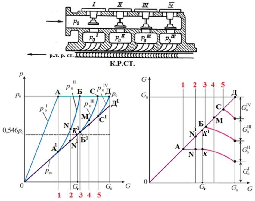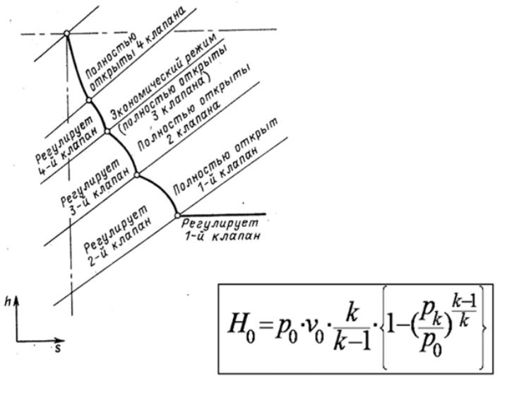 Изменение теплоперепада в регулирующей ступени при разных расходах