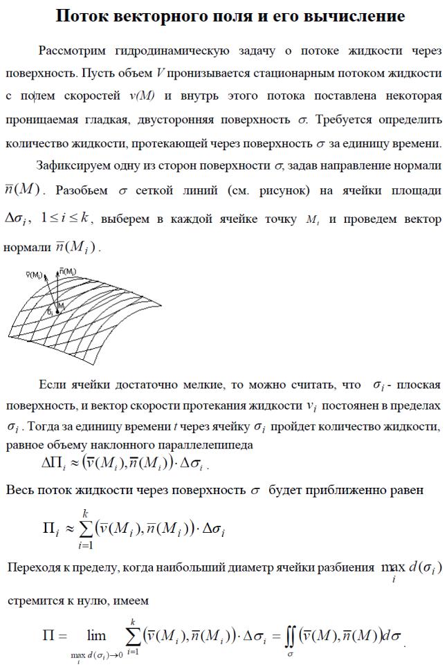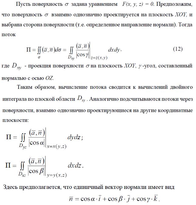 Следовательно, вычисление потока П через выбранную сторону