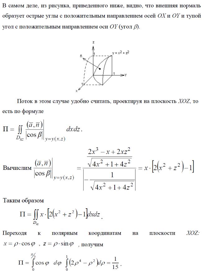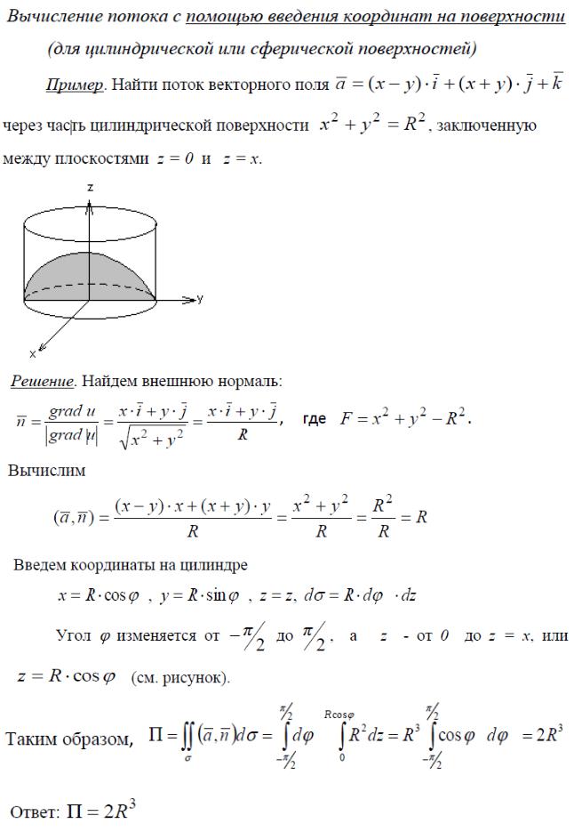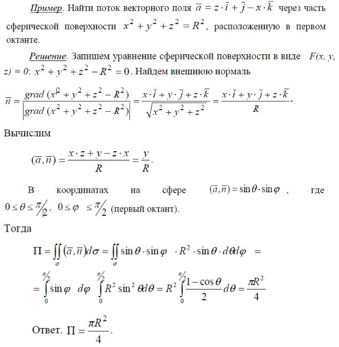 Применяя формулу, приведенную выше, вычислим искомый поток: