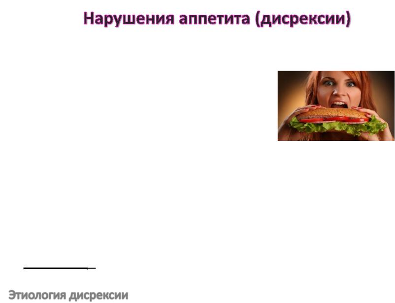 •булимия – обжорство «волчий аппетит» трудно контролируемое