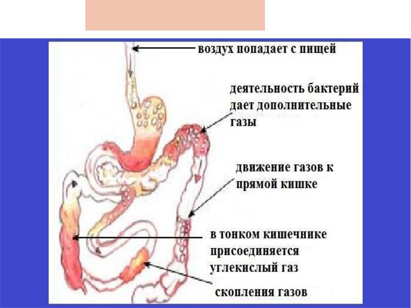 Метеоризм сопровождается расстройством деятельности других органов : (сердцебиение, аритмии) головные боли, мышечные боли, нарушения сна, настроения, слабость, чувство онемения конечностей.