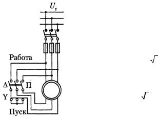 Пуск переключением со звезды на треугольник (рис. 2.50) применяется в том случае, если данному напряжению сети соответствует схема соединения обмотки статора треугольник. Тогда, если при пуске этого двигателя обмотку статора пересоединить в звезду и включить ее в ту же сеть, напряже-