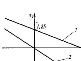 Решения этой системы x0 для 0 и x для малого значения будут сильно отличаться. Это связано с тем, что на плоскости x1x2 уравнения системы задают “почти” параллельные прямые 1 и 2 (рис. 2.1). Следовательно, уравнения являются “почти” линейнозависимыми, и при их малом изменении относительно друг друга точка пересечения прямых будет значительно меняться.