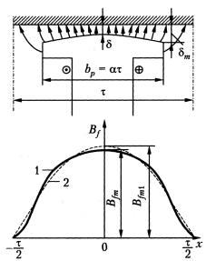 щения магнитной цепи по продольной оси, то есть по оси полюсов. В общем случае размер зазора в пределах полюсного наконечника не постоянен, и значение k принято рассчитывать для среднего расчетного зазора