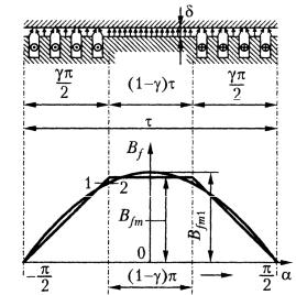 нять, что кривая распределения индукции поля возбуждения вдоль зазора имеет вид трапеции (кривая 1 на рис. 2.3, б). Отношение обмотанной части полюса ко всему полюсному делению γ лежит обычно в