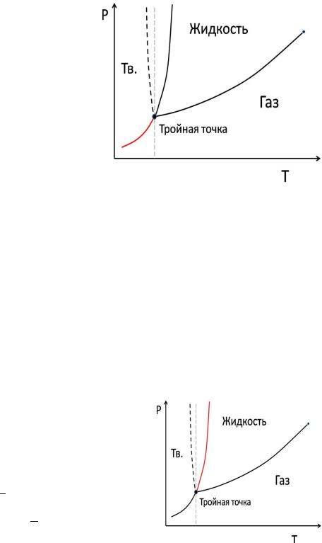 плавления вещества повышается. Линия плавления наклонена вправо.