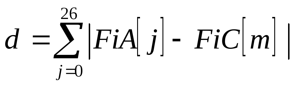 Визначити частоти символів алфавіту. Занести їх у масив FiA.