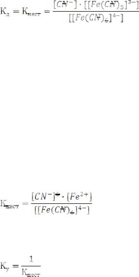Константа устойчивости – величина обратная константе нестойкости: