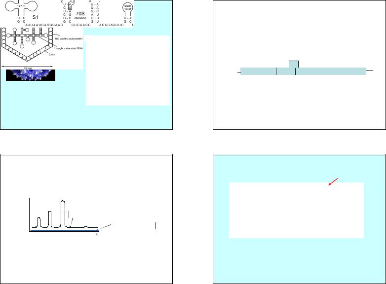 Исходно в фаговой РНК для рибосом доступен только ген белка оболочки, инициаторный кодон которого расположен на вершине шпильки.