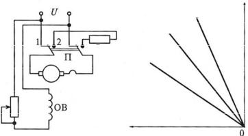 т.е. примерно вдвое будет превышать ток при прямом пуске двигателя. Для ограничения тока в цепь якоря включают резистор Rпр , как и в