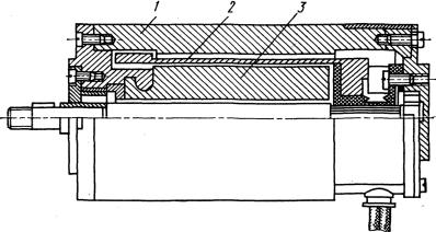 Рис. 6.5. Малоинерционный исполнительный двигатель постоянного тока серии ДПР: 1 – корпус (станина); 2 – полый якорь с обычной обмоткой; 3 – постоянный магнит