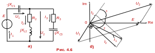 Векторная диаграмма токов и напряжений цепи представлена на рис. 4.6б, при этом