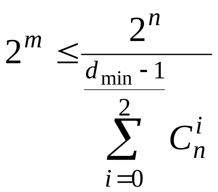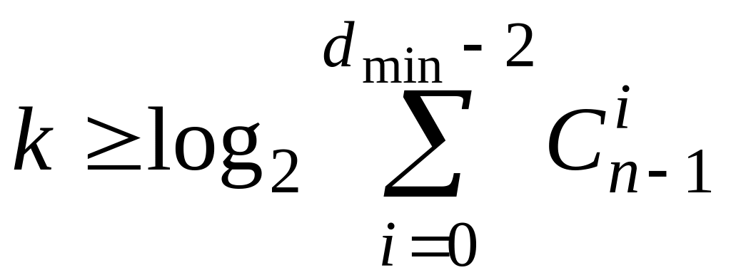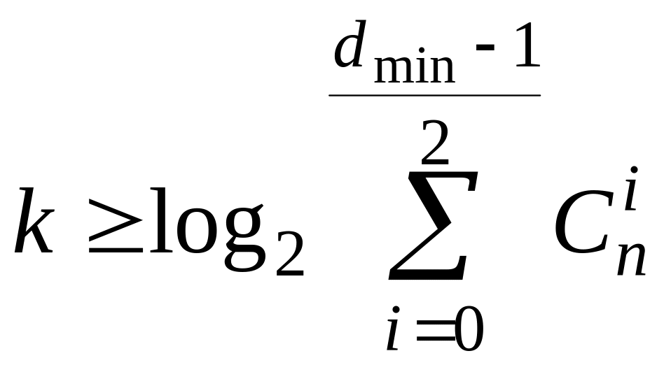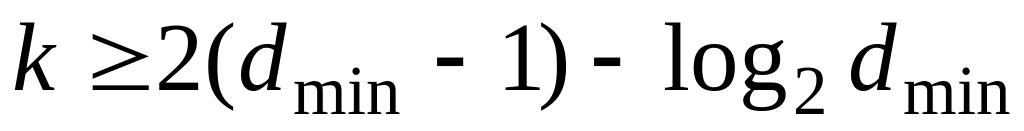 Отсюда можно получить выражение для оценки числа проверочных символов: