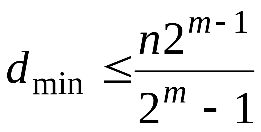 Так, граница Плоткина определяет верхнюю границу кодового расстояния при заданном числе разрядов в кодовой комбинации и числе информационных разрядов т для двоичных кодов: