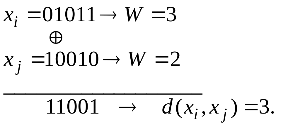 Ранее было установлено, что для того, чтобы можно было обнаруживать и исправлять ошибки, разрешенная комбинация должна как можно больше отличаться от запрещенной. Если ошибки в канале связи действуют независимо, то вероятность преобразования одной кодовой комбинации в другую будет тем меньше, чем большим числом символов они различаются.