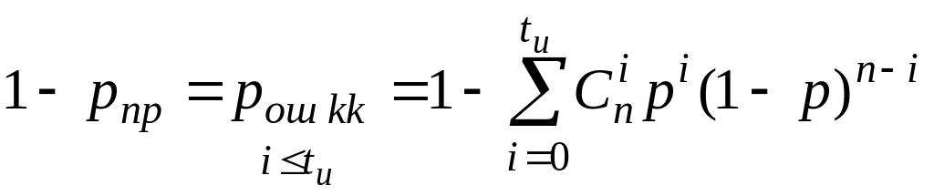 где p - вероятность искажения одного элемента кодовой комбинации.