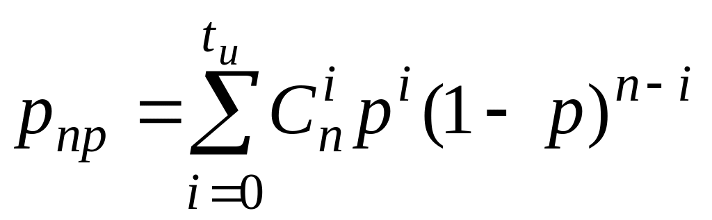 Вероятность правильной регистрации кодовой комбинации из n элементов равна вероятности того, что в ней содержится не более ошибок