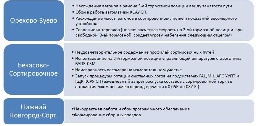 Причины перехода работы автоматизированных сортировочных горок на ручной режим: