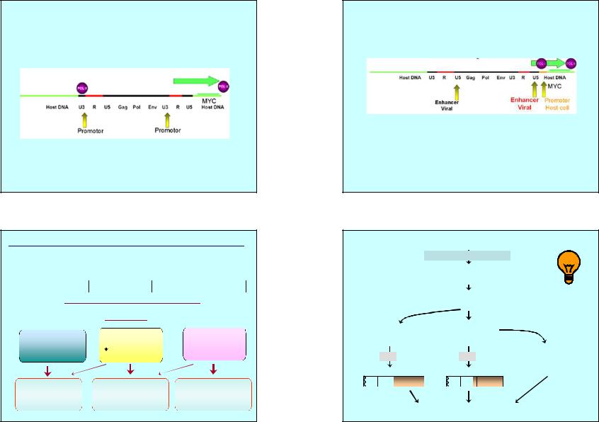 Вирусная последовательность (энхансер) может стимулировать транскрипцию протоонкогена с использованием промотора протонкогена