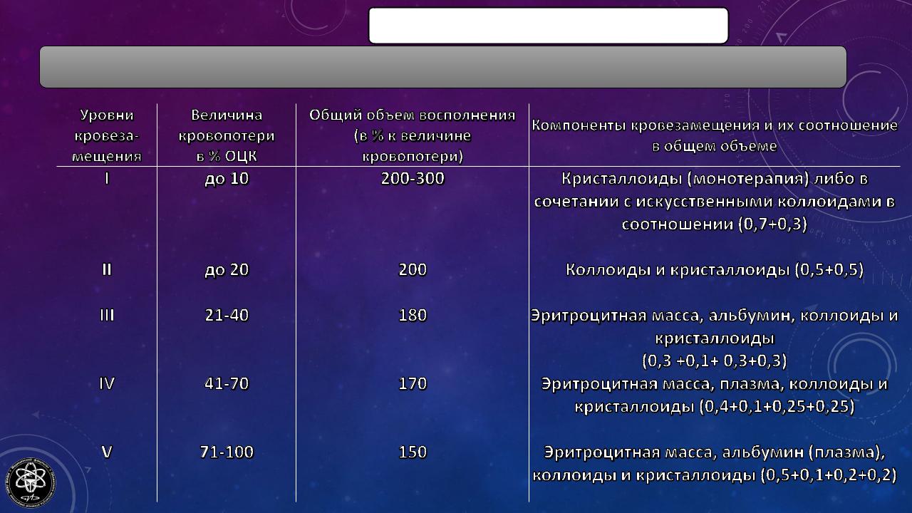 Компенсацияостройкровопотери.
