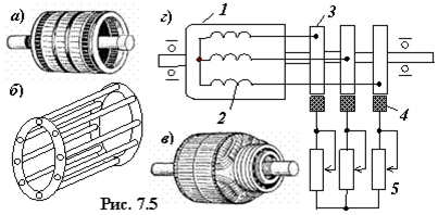 Асинхронные двигатели с короткозамкнутым (КЗ) (серии АК, рис. 7.1б) и с фазным (серии АО, рис. 7.1в) роторами разрабатывались и выпускались в нашей стране в виде единых серий: А, АО (1949-1951 годы), А2, АО2 мощностью 0,6-100 кВт (1958-1960 годы), А, АК (100-1000 кВт, 1952-1956 годы), А2, АК2 (100-1000 кВт, 1964-1965 годы), А3, АО3 (132-500 кВт), 4А и АИ (АИР) (0,06-400 кВт до настоящего времени).