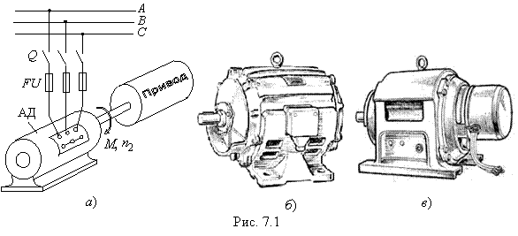 Асинхронные двигатели (АД) преобразуют электрическую энергию в механическую и являются потребителями электрической энергии (рис. 7.1а). Первый асинхронный двигатель был сконструирован в 1889 г. русским инженером М. О. Доливо-Добровольским.