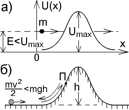 Туннельным эффектом называется прохождение микрочастицы через потенциальный барьер в том случае, когда полная энергия Е частицы меньше высоты барьера (рис.5.1, а).