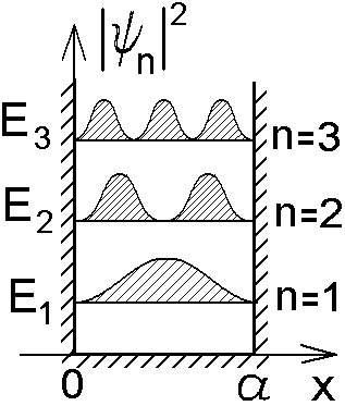Энергия микрочастицы с массой m, находящейся в потенциальной яме ширины а на рис.5.17, может принимать только отдельные разрешенные значения