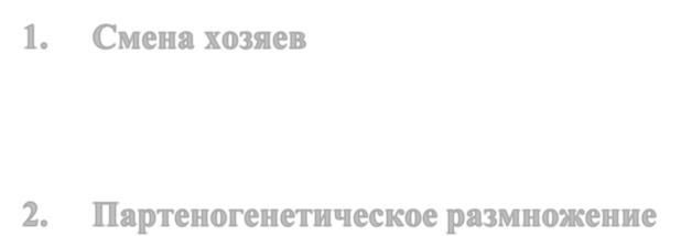 1.Смена хозяев, заключающаяся в том, что половозрелая стадия живёт в теле одного животного — окончательного хозяина, тогда как личиночные стадии паразитируют в теле другого вида, служащего промежуточным хозяином