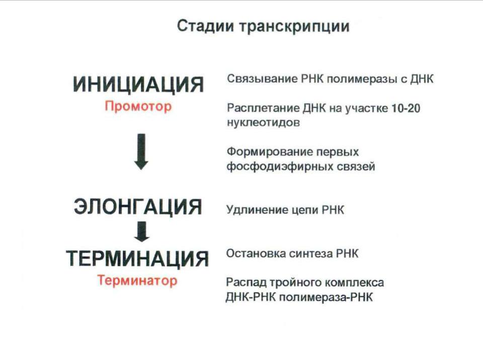 5 ‘) Результатом этого этапа является гетерогенная ядерная РНК или незрелая РНК, или первичный транскрипт.