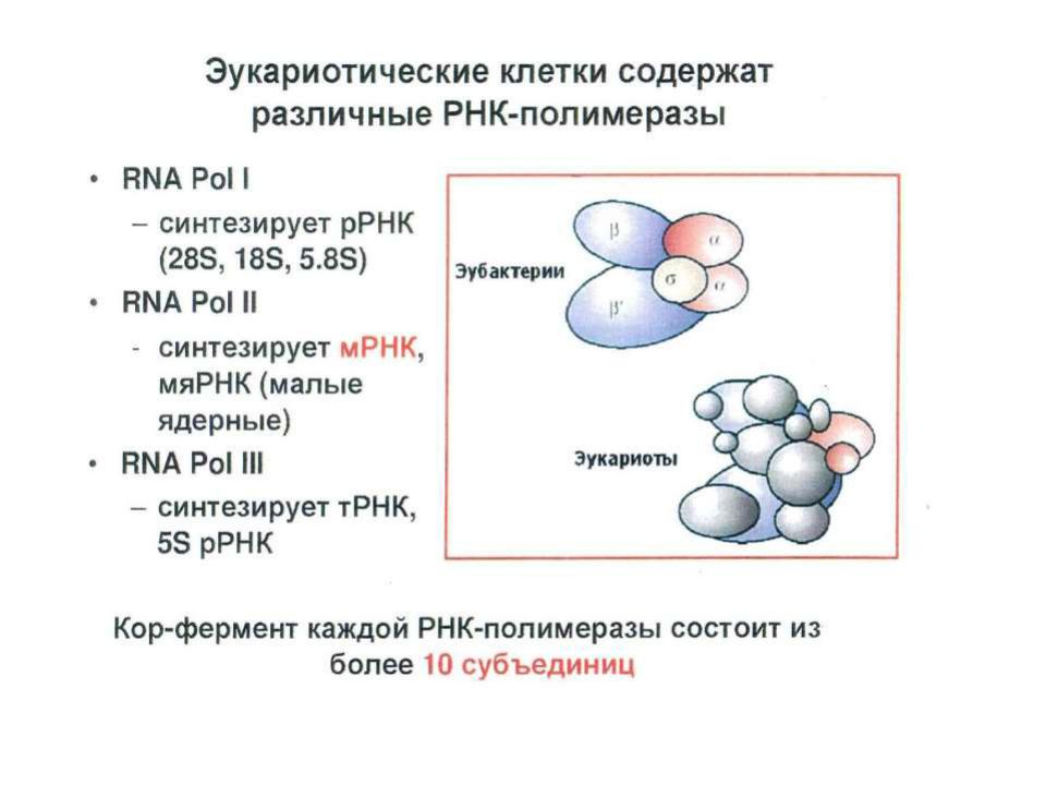 У эукариот различают 3 вида РНКполимераз, у прокариот – 1 вид.
