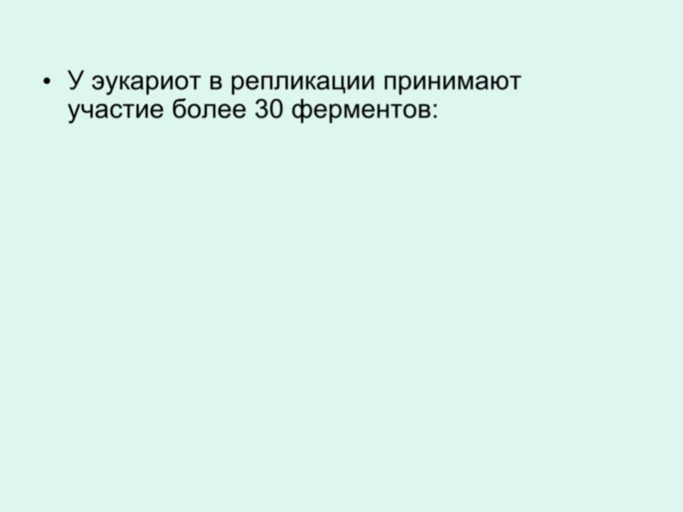 •У эукариот в репликации принимают участие более 30 ферментов: