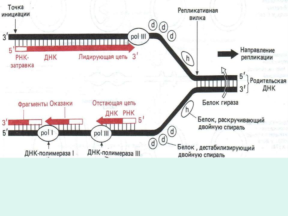 •ДНК-лигаза соединяет фрагменты Оказаки;