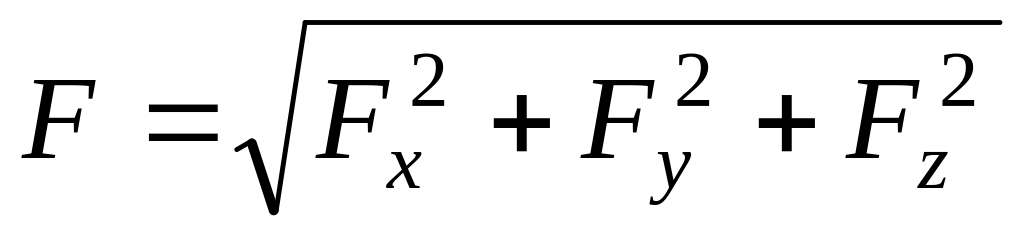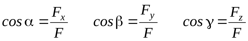 Зная проекции силы на оси координат, определяем модуль силы и ее направляющие косинусы: