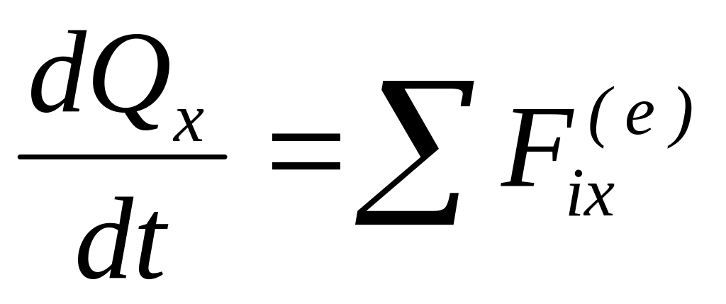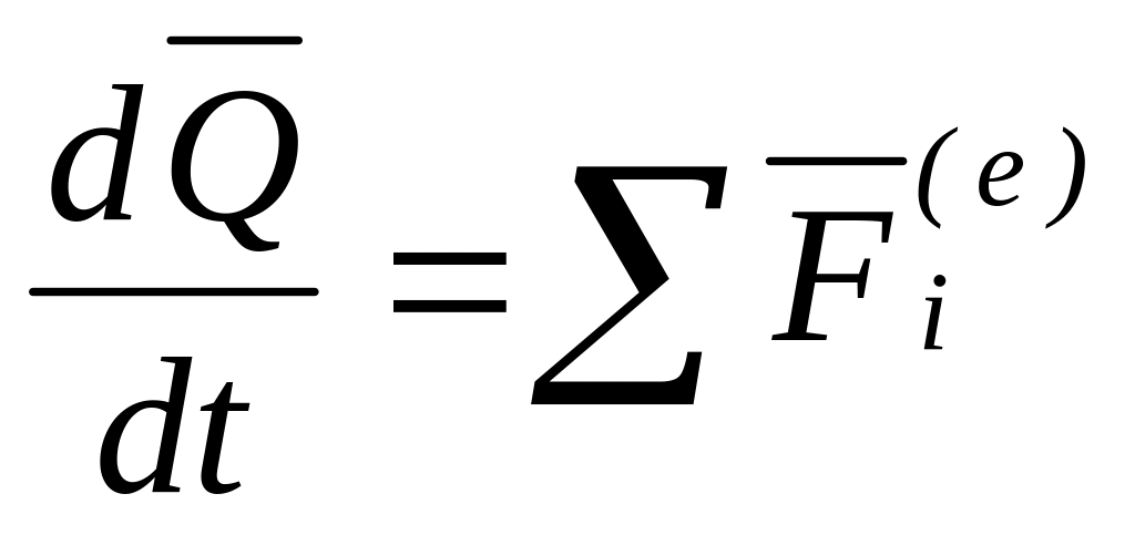 Теорема. Производная по времени от количества движения системы равна векторной сумме всех внешних сил, действующих на систему.
