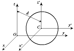 Установим зависимость между моментами инерции относительно параллельных осей, одна из которых проходит через центр масс.