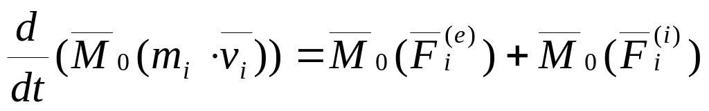Теорема. Производная по времени от момента количества движения системы, взятого относительно какого-нибудь центра, равна векторной сумме моментов внешних сил, действующих на систему относительно того же центра.