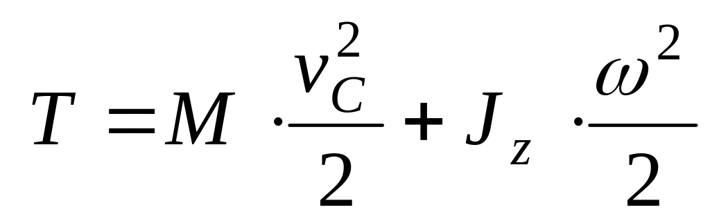 Кинетическая энергия твердого тела при плоском движении складывается из кинетической энергии тела вместе с центром масс и кинетической энергии тела от вращения вокруг оси, проходящей через центр масс и перпендикулярной плоскости движения..
