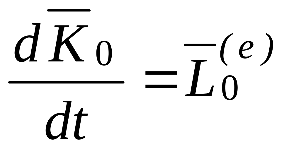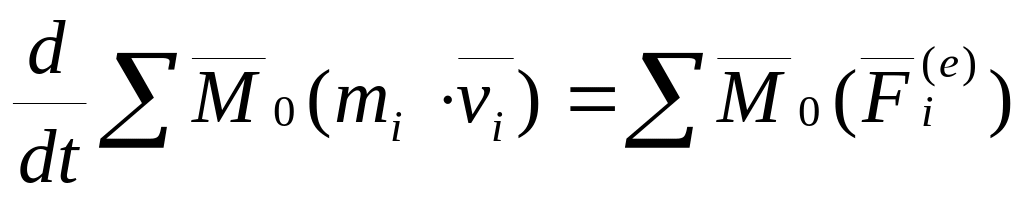 Теорема. Производная по времени от момента количества движения системы, взятого относительно какой-либо оси, равна векторной сумме моментов внешних сил, действующих на систему относительно той же оси.